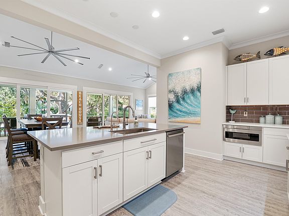 Welcome to Ocean Ridge! This contemporary home, constructed in 2021, offers a spacious and inviting atmosphere for comfortable living. With soaring vaulted ceilings and LVP flooring throughout, this like-new residence presents a modern aesthetic. The upgraded chef’s kitchen features Bosch appliances, including a double oven and 36'' cooktop, complemented by sleek white shaker cabinets and quartz counters. A custom-built pantry and laundry room add convenience to daily tasks. Entertain effortlessly in the open floor plan with vaulted ceilings, while the opulent ensuite bathroom off the oversized owner’s bedroom provides a retreat-like experience. Custom sliding glass doors lead to a large covered patio overlooking a private oasis with fruit trees, fire pit, and outdoor kitchen. Owner upgrades include a whole house generator, Kinetico water softener, RO drinking water filtration system, and blown spray foam insulation throughout. Electric garage door roller screens, ceiling fans, and EV charging enhance functionality. The garage is equipped with cabinets, storage racks, electric bike hoist, and pull-down steps for added convenience. Additional features include a front door full view cool screen, oversized architectural fans, WiFi-enabled irrigation, thermostat, and door locks. Enjoy the custom 3rd full bathroom with 3 shower heads, along with the office/4th bedroom featuring a high-end built-in Murphy bed. Custom roller shades throughout the home provide privacy and shade. Don't miss this opportunity to own a luxurious home in the highly sought-after Ocean Ridge community!