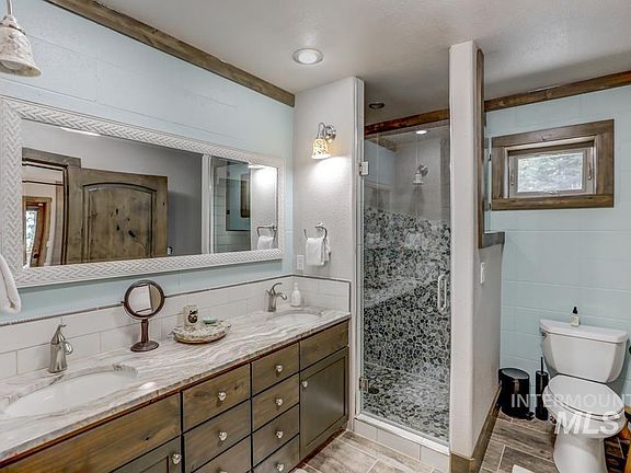 A favorable owner-carry option is available on this Stunning TURNKEY, energy-efficient home on a rare 1-acre lot within city limits.Thoughtfully engineered with passive solar design, this home features radiant floor heating, custom shades, and a pellet stove for year-round comfort. Key features include a main-level master suite with private deck, 2 laundry rooms, office, gym, playroom, and possible sixth bedroom (egress would need to be added). Enjoy outdoor living with multiple covered decks and two patios—one with a fire pit, the other with a hot tub. The mother-in-law suite (ADU) features its own great room, full kitchen, dining area, laundry room, bedroom, bathroom with walk-in shower, and patio access, ideal for privacy and independence. All furniture is negotiable, the home comes with an extra refrigerator & freezer in the garage, a safe, Peloton exercise equipment, and a security system with cameras. An oversized, heated 2-car garage includes shop space and a large driveway, MUST SEE!