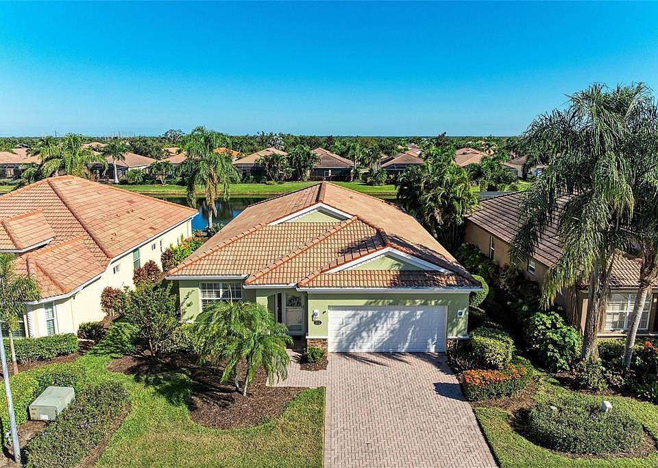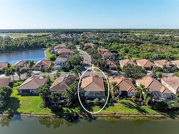 Live where every day feels like you’re on vacation in this GOLF-DEEDED home at River Strand Golf & Country Club! Tucked behind the gates of this maintenance-free neighborhood, this beautifully cared-for 3-bedroom, 2-bath pool residence captures the essence of relaxed, resort-style Florida living. Enjoy morning coffee by your heated pool overlooking the lake, then spend the day on River Strand’s 27-hole Arthur Hills–designed championship course or meet friends for lunch at the tiki bar. Whether you love golf, pickleball, tennis, or simply relaxing in the sunshine, everything you enjoy most is right at your fingertips. Inside, you’ll find an open, light-filled layout with an updated kitchen featuring granite countertops, rollout shelving, soft-close doors, double oven, double pantry, and filtered water at the sink. Elegant details—plantation shutters, crown molding, and a blend of tile and engineered hardwood flooring—make the home completely carpet-free. The spacious primary suite includes a relaxing flex area with beautiful lake views—perfect for a home office, cozy den, or morning yoga spot. A customized walk-in closet keeps everything perfectly organized, while the spa-inspired bath offers dual sinks, a large walk-in shower, soaking tub, and private water closet. Both guest bedrooms are spacious and welcoming—ideal for visiting family, golf friends, or grandchildren coming to enjoy the sunshine. Meticulous care and smart updates give you peace of mind from day one, so you can simply settle in and start living the resort lifestyle. Notable improvements include a Trane A/C (2020), exterior paint (2023), new pool heat pump (2023), electronic lanai shades (2023), iFLO drain system (2025), and a whole-home surge protector (2025) with a $100,000 replacement policy. Whether you’re seeking a primary residence, winter retreat, or easy-care investment, this home is move-in ready and priced to sell. Plus, you can lock in a 4.875% assumable VA mortgage—a rare opportunity in today’s market. River Strand’s amenities make every day feel like vacation. Enjoy a grand clubhouse offering fine dining, a casual grill room, and a billiards lounge, along with a lively tiki bar for gathering with friends. Spend your days at one of two resort-style pools with a hot tub and resistance pool, or visit one of the six satellite pools. Stay active on eight Har-Tru tennis courts, eight pickleball courts, and two 24/7 fitness centers. A dedicated lifestyle director curates a full calendar of social events, clubs, and activities, ensuring there’s always something to enjoy. And when you’re not on the golf course or by the pool, you’ll love the new Heritage Harbour Marketplace nearby—with shops, cafés, and restaurants just moments from your front door. Your quarterly HOA fee includes lawn maintenance, cable, and internet, providing both convenience and exceptional value. Ideally located near I-75, Lakewood Ranch, UTC Mall, Benderson Park, and some of Florida’s most beautiful beaches. This is more than a home—it’s a lifestyle waiting to be lived. Schedule your private tour today and make River Strand your next chapter.