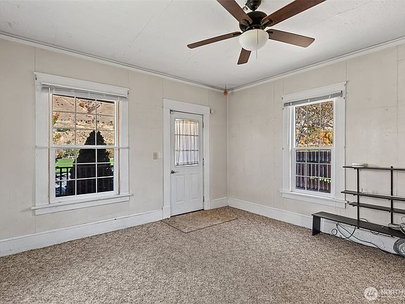 Charming small-town living! This 1-bed (plus bonus room), 0.75-bath home is perfectly located across from Riverside park and is just a short walk to downtown. Enjoy mountain views from your welcoming front porch. The 698 sq ft home sits on a 0.14-acre lot in a peaceful neighborhood, offering convenient alley access. The highlight for any hobbyist or storage-seeker is the 3 separate storage sheds/shops, all equipped with power! This is a unique opportunity to own a cozy home with an incredible amount of flexible shop space.