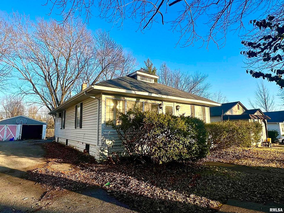 A 3-bedroom, 1-bath bungalow with a large living and dining area, enclosed front porch, unfinished partial basement, and a 1-car detached garage with extra storage. Recent updates include windows, plumbing, and a gas water heater. (water and sewer lines have been replaced to the road)