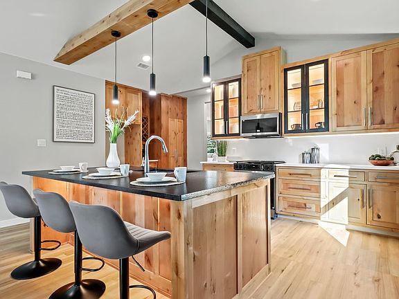 Luxurious modern interiorCorner lotWooden beamsExotic lightingCustom cabinetryCraftsman exterior