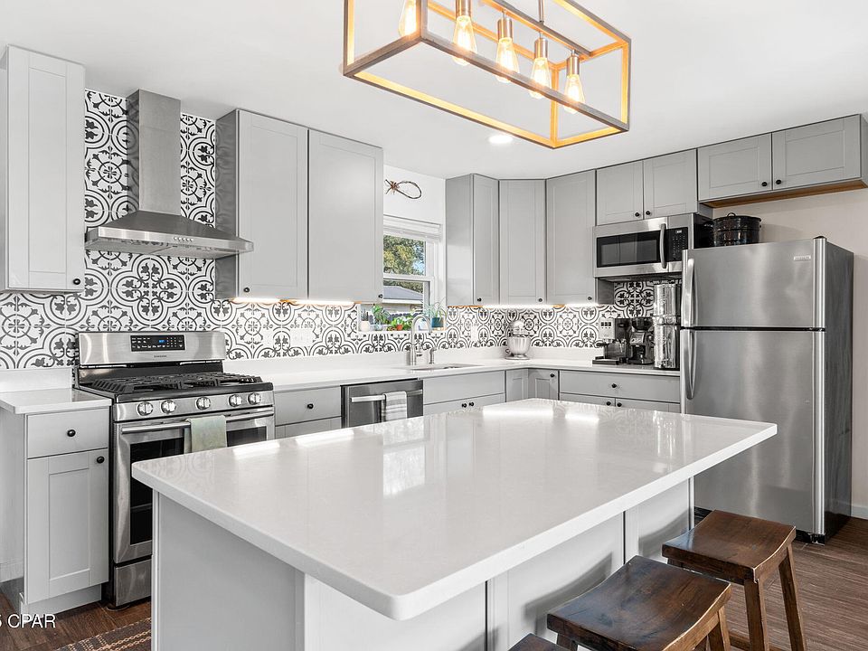 Welcome to 212 S Kimbrel Ave, a beautifully updated 3-bedroom, 2-bath home offering the perfect blend of style and comfort in a quiet, established neighborhood. Step inside to find a bright and open living area filled with natural light, flowing seamlessly into a stunning modern kitchen featuring a large center island, quartz countertops, stainless steel appliances, and a designer tile backsplash. A bonus room off the main living space provides flexibility for a home office, playroom, or cozy reading nook. Recent updates include a new dishwasher (2025), kitchen sink and disposal (2023), and HVAC and water heater (2019), ensuring peace of mind for years to come. Outside, the fenced backyard offers plenty of space for kids, pets, and entertaining, complete with a wooden deck and storage shed. Move-in ready and just a short drive to schools, shopping, dining, and the beach, this home has everything you need to enjoy Panama City living at its best!