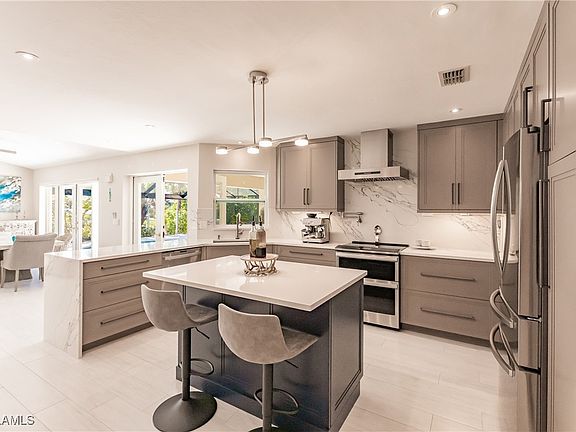 *Gulf Access Residence *Ready to move-in *Completely renovated in 2019/2020 *New Roof in 2023 *Flood Zone X, never flooded during any of the hurricanes *Whole-house 26kW Generac propane generator can provide uninterrupted electric power for 10 days or more before requiring refueling *Recently replaced AC system *Whole house water filtration system *Hurricane impact resistant doors and windows *Custom Kitchen Cabinets with quartz countertops and full backsplash *Fully renovated bathrooms, with floor-to-ceiling tiles *Sizable private office *All new marble, wood, and porcelain tile flooring throughout *Sound insulation added to interior walls *Solid-core doors for sound dampening *Window coverings include motorized remote control shades and plantation shutters *Vacumaid central vacuum *Salt water pool with new PebbleTec pool finish installed in 2023 *Pool deck covered with marble pavers and surrounded by a picture-window pool enclosure *Swimming pool heat pump heater *1600 square foot outdoor living area with kitchen and grill *Tesla charging station inside the garage *Living room, dining room and foyer light fixtures do not convey with the sale. Garage fridge does not stay.