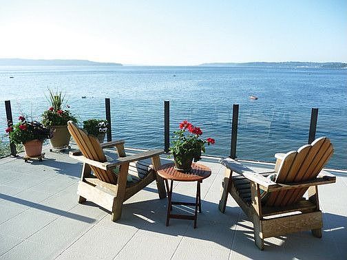 ? Custom built in 2007 with unparalleled views of Puget Sound, Maury and Vashon Islands, and the Olympic mountains. Sweeping view of Gig Harbor to Three Tree Point and a dramatic northerly view corridor. Breathtaking sunsets with ever-changing views of the Sound. ? Salt water frontage with easy sandy beach access. Lawn area at the beach with water toy storage and fire pit. Tidelands included in ownership. Walk to Redondo’s boardwalk and Salty’s Restaurant. ? 4900 SF, 5 bedroom, 2 full bath, two ¾ baths and one ½ bath in the main quarters. An additional 670 SF studio apartment with one ¾ bath above the 3 car garage. Unique 3 story turret. ? Custom granite, marble, travertine and ceramic tile throughout. Inlaid carpeted living room with 10 foot box beam ceilings and floor to ceiling windows to capture the view. ? Dramatic 2 story entry with open staircase; custom wrought iron and wood railing ? Private view office located off main entry with bookshelves, see-through file place and two work stations. High-tech cabling and central IT panel for cable and Internet service. ? Gourmet kitchen with 5 burner gas stove, center island with seating, custom cherry cabinets, tiger wood flooring and unique hard surfaces throughout. Pull out mixer cabinet and soft close drawers. Franke double deep sink. Purified Insta-Hot Water and cold water drinking system. Oversized pantry with custom shelving and freezer. Kitchen computer station. ? Laundry room with utility sink; separate mudroom entrance with storage lockers and tile floors ? Master suite includes gas fireplace, automated blinds, sound proofing, 5 piece bath with walk-in shower, oversized jetted tub, Sonotube skylights, heated tile floor and large walk-in closet with custom built-ins. ? Water views from all bedrooms; custom window coverings and blinds ? Custom hard surfaces in all bathrooms; abundant storage and built in closets ? Basement entertainment area includes custom cherry wood entertainment cabinetry and wiring. 2nd mini-kitchen with dishwasher, microwave oven, sink, refrigerator and unique stained concrete flooring. ? Mirrored exercise room with storage closets ? Gas fired tank-less water heater and standard gas fired hot water heater insure ample hot water ? Split system, two zone control, gas/electric HVAC system with air conditioning and easy Honeywell programmable thermostats. In-floor heating system in basement & master bath. Main-block plumbing system for easy maintenance. Three gas fire places and one wood burning fire place. ? Exterior hot waters shower and foot washing station for simple beach clean-up. View hot tub. ? Attic storage in apartment with pull down stairs ? Whole house back-up natural gas powered generator with automatic switching for uninterrupted power supply ? Motion activated exterior soffit lighting, foundation lighting and sidewalk lighting; alarm system ? Professionally landscaped with sprinkler system; automatic irrigation system with rain sensors ? Sidewalks on all sides of the house for easy maintenance with custom stamped concrete surfaces; switched holiday outlets located in the eaves ? RV Parking