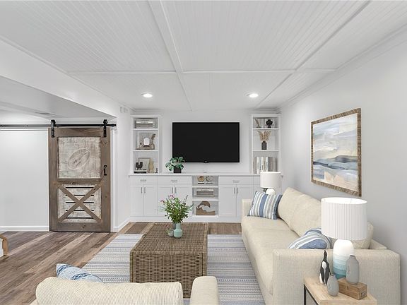 Get ready to fall in love with this Stunning Brick Ranch home that’s been Stylishly updated just for you! Step inside and be wowed by the luxurious vinyl flooring that flows throughout this gem, complemented by a brand-new furnace and A/C unit to keep you comfy year-round. The Kitchen is adorable with a farmhouse sink, a subway tile backsplash, Pot rack, and pantry! The dining room flows effortlessly into a sunlit 3-season room with walls of windows, perfect for sipping your morning coffee. The fabulous Bath features an elegant marble-topped double bowl vanity, chic tile flooring, and a trendy subway-tiled shower that will make every day feel like a spa day. The finished walk-out game room is an entertainer's dream, complete with built-in shelves, an entertainment unit, a wine/beverage fridge, and a butcher block top bar area. It even has a chic half bath with a new vanity tile flooring! The fantastic level backyard, complete with a stylish black metal fenced area and extra parking!