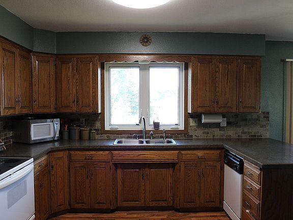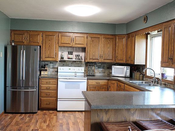 Split level home located in Turtle Lake, North Dakota. On large corner lot, has 1 stall detached garage, 2 stall attached garage, mature apple trees and juneberry bushes. Shingles, siding, and most windows were replaced in the last few years. This property could also be used as rental income property, as it could be set up at 2 apartments, one upper level and one lower level. Each level having kitchen, bath, 2 bedrooms, separate entrances, and shared laundry.