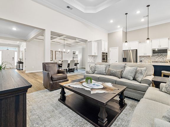 Like new semi-custom home available now in the prestigious gated community of Waterbridge. Impeccably maintained and move-in ready, this home offers high-end living with countless desirable features! The primary suite is what dreams are made of with oversized windows, tons of natural light, stunning private views of greenery, and a large elegant bathroom with huge walk in closet. Experience the peace and abundance of light flooding through the luxurious almost floor to ceiling windows throughout the first floor creating a bright and airy atmosphere. Cascading sliding glass doors open to your backyard oasis complete with screened-in patio, ceiling fans to keep you cool, hot tub, and nature preserve- making your backyard a forever tranquil space. You’ll be sure to enjoy the luxurious coffered ceilings, gourmet chef-inspired kitchen, soaring 12 foot high tray ceilings in the living room and primary suite, and stunning crown molding throughout! The home also provides a large laundry room with added built-in storage and stylish drop zone just off the garage. You will feel like a million bucks driving into your garage over top the designer coated concrete driveway. This floor plan provides endless options with 2 bedrooms that can be used as an office or guest room downstairs, and an additional bedroom, bathroom and second living room upstairs. Whether you’re looking for a 3 bedroom with an office and gorgeous French doors, or a 4 bedroom - this one is for you! Ideal for entertaining, the kitchen offers an over-sized gourmet island with ample counter space and seating as well as built-in stylish wine rack. The thoughtfully designed kitchen features a separate coffee station, and tons of cabinet space as well as upscale Dovetail design and soft close drawers. Upstairs, a spacious loft provides flexibility as a second living area or media room. An additional bedroom and full bathroom offer privacy for guests or family members. Waterbridge is a gated custom-home community known for its world-class amenities, including the largest residential pool in South Carolina complete with Olympic-size lap-pool, a swim-up bar area perfect for entertaining, and cascading fountains galore! Enjoy the hot tub and the fire pit on cooler days. Residents have access to a state of the art fitness center, playground, tennis, pickleball, bocce, and basketball courts, along with a private dock, kayak launch, and separate boat and RV storage. The community is surrounded by an 60+ acre stunning lake, protected wildlife and numerous areas of protected land creating scenic views and a peaceful retreat. Carolina Forest features a plethora of top-rated schools, medical facilities, golf courses, pristine beaches, shopping, dining, and entertainment. Do not miss the opportunity to own this stunning home in one of Myrtle Beach’s most exclusive communities.