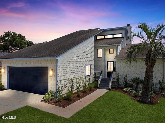 Beautifully updated canal-front home in Pleasure Cay with a 47' bulkhead, a brand-new 23' floating dock, and direct Intracoastal Waterway access! This furnished (with exceptions) Carolina Beach retreat is ideally located near the greenway, kayak and boat launch, Carolina Beach State Park, boardwalk, fishing piers, restaurants, and shopping. Extensive 2024-2025 renovations include a designer kitchen with ZLINE 48'' double oven gas range, double kitchen sink faucets, expansive island, and tile-to-ceiling backsplash. Fully renovated bathrooms feature tiled walls/floors and a luxurious master shower with double heads. Additional new upgrades include: HVAC & mini splits, tankless gas water heater, wood/carpet flooring, custom accent walls and trim, concealed master entry, finished office, fireplace mantels, interior/exterior paint, Lutron smart light switches, interior and exterior lighting fixtures, and GE Smart washer/dryer. The home is hard-wired for WAPS with a smart box. Exterior highlights include new fiber cement siding, new fenced backyard, cable deck railings, and a spacious 2-car garage. Other improvements include miscellaneous electrical, plumbing, framing, insulation, drywall, masonry, and landscaping. A pool may be added (with proper approvals) in the side yard or near the back, as seen at the neighboring property. See documents for detailed list of improvements and highlights.