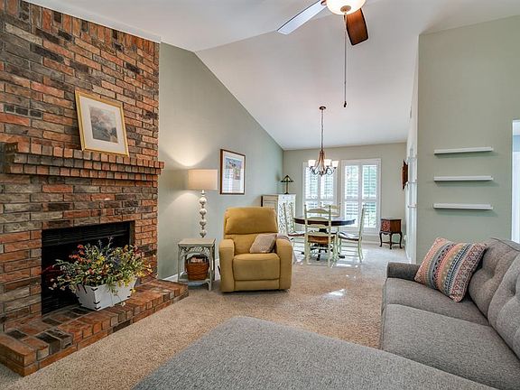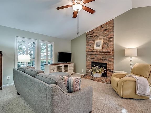 Don't miss this incredible one story in a quaint neighborhood with gorgeous backyard garden! Large living room features vaulted ceilings and exposed brick fireplace. Great floorplan with kitchen opening to living room and bonus room over looking the garden. Plantation shutters throughout! Master suite features walk in shower and double vanities. 3D Matterport tour available.