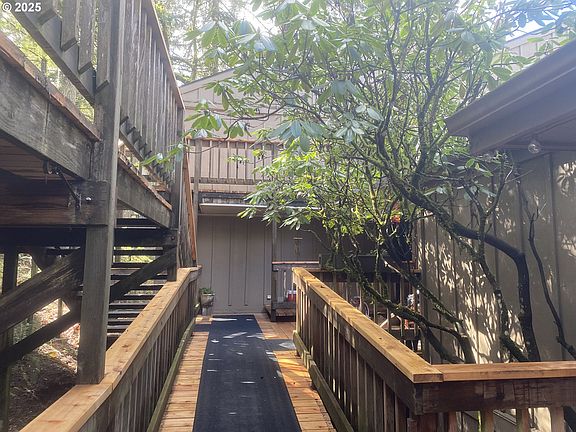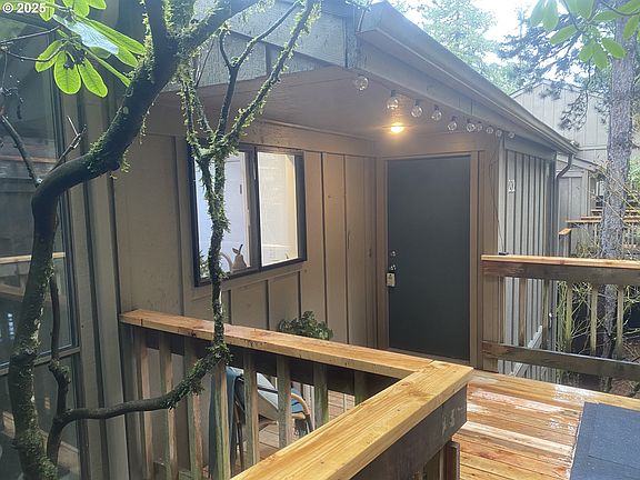 Newly updated home nestled in the trees of Peaceful South Eugene. Less traffic in this backside of complex location. Enjoy Filtered City Views from the Private Balcony or the tranquility of the both Open & Covered Front porch. Outdoor lovers there is Walking & Hiking nearby accessible from the Ridge line Trails. This Pacific NW Feel Town home features Open Concept Living & Dining Upstairs with Vaulted Ceilings & Natural lighting from the Large windows & Sliding Door. Also upstairs is a separate Kitchen with Pantry, New Quartz Counter tops, Electrical and lighting. For those on the go, there is a Conveniently located Half bath & Closet just inside from the front door. Lots of storage, Large Bedrooms & Full Bath on the lower level. This home has been newly painted throughout! Enjoy this home with a trailhead right out your front door and all the Recreational possibilities Highland Condominiums offers.
