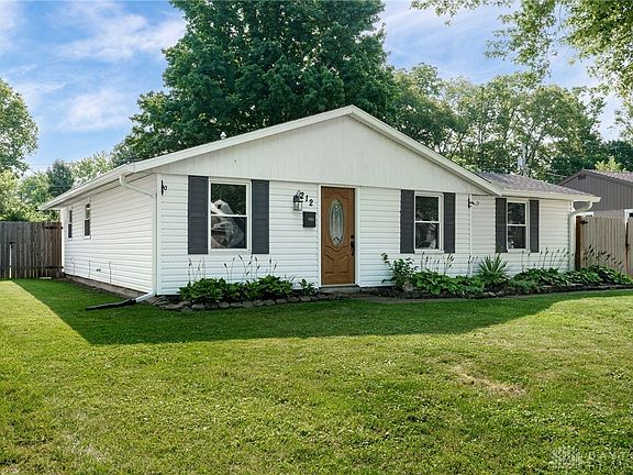 Come see this fully remodeled beautiful ranch in West Carrollton with no steps! This nice sized home has been completely refreshed with fantastic updates making it move in ready. This home offers a bright and airy kitchen as you walk into the entry way with new cabinetry and counter tops. It is centrally located between a nice sized living room and family room, all with brand new flooring throughout. There are 3 nice sized bedrooms all come equipped with large paddles fans and new carpeting. Unique from most all of the other homes in the area this one has 1 1/2 bathrooms making this house even more special. The exterior of the home has been expertly landscaped to add to its charm. Large back yard with firepit fun for entertaining. The entire property has a privacy fence around it including a privacy gate for added security, plus a charming storage shed. Large one car garage includes work benches perfect for the home crafter or craftsman. All high cost updating has already been done for you, all you have to do is enjoy your new home. Roof and gutters replaced on both the home and the garage in May 2023.