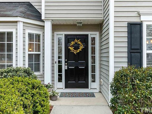 Boasting an open layout & plenty of interior and exterior space, this well maintained home offers a formal dining rm, bright kitchen & breakfast nook. Spacious family room and hardwoods on main level. Master suite features vaulted ceiling. Bonus rm/Opt. 4th bedroom w/ built in desk and shelving w/ walk in storage. Enjoy your fenced backyard and wooded view from the covered patio. 2 car garage + Storage shed. Neighborhood pool & playground. Close to RTP, RDU, I-40 & I-540, shopping & restaurants.