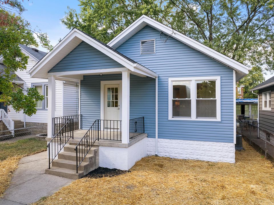 You will enjoy this lovely bungalow. No detail has been missed! Enjoy your covered front porch and covered back patio, with a nice flat rear yard, great for entertaining. You will love the simple comfort of this move in ready home. New roof, HWH, furnace and AC, siding. Replaced from top to bottom!