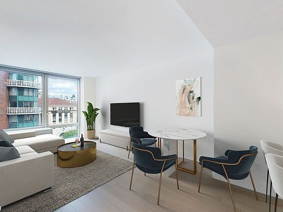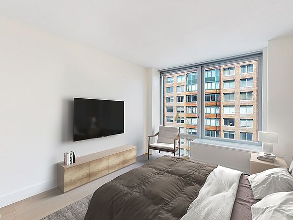 Brand New luxurious one bedroom Condo located in the heart of Lincoln Square The apartment is bathed in natural light with oversized floor-to-ceiling windows. Custom CetraRuddy-designed eat-in kitchen with white matte lacquer cabinetry, honed quartz slab countertops, backsplash, and waterfall edge. Luxurious bath is finished with Venus White marble tiles and walls, custom CetraRuddy designed millwork vanity clad in leather textile with medicine cabinet above, and polished nickel fixtures by Waterworks. Full suite of integrated MIELE appliances with garbage disposal. White European Oak flooring throughout Full size Whirlpool W/D Touch-less digital key access entry 212 West 72nd Street features a robust suite of amenity spaces, including a residents' lounge designed in the style of a private great room with space for reading or entertaining, a light-filled playroom with kitchenette and space for learning and for play, a state-of-the-art fitness center designed by The Wright Fit with private training studios, as well as an adjacent landscaped terrace with separate spaces for outdoor fitness and lounging. Most impressive of all, the residents' roof terrace is designed with an outdoor grill, an outdoor fireplace, and spaces for both entertaining and lounging, all with sweeping panoramic views from the Midtown skyline to Central Park and the landmark building crowns of the Upper West Side. This thoughtful offering is complete with the modern convenience of a full-time doorman and concierge, building porters, and live-in resident manager, as well as availability of private storage and bicycle storage.
