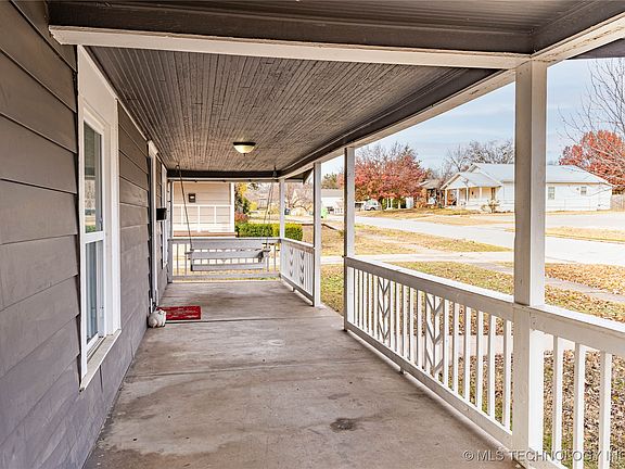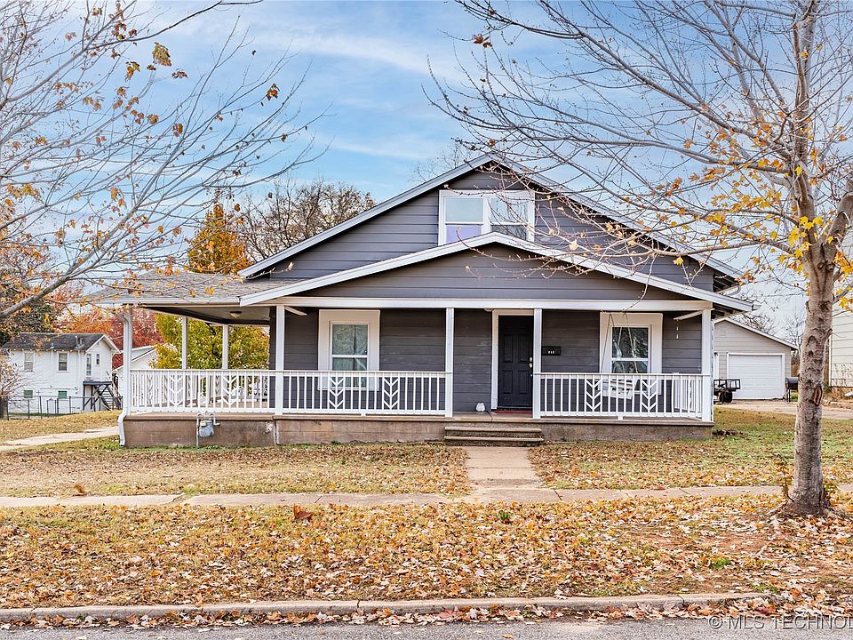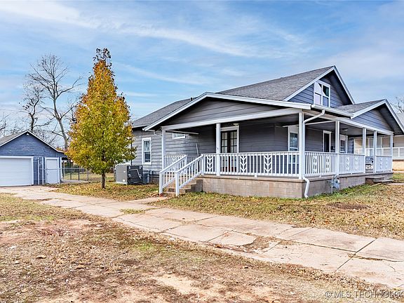 Charming 3 bed, 1.5 bath home located in Bristow, OK. Just 30 minutes to Tulsa! Unique combination of character and comfort! The property is highlighted by a large, inviting wrap around porch enhancing the home's curb appeal! New flooring downstairs and new interior paint throughout!The kitchen has lot's of storage w/ plenty of cabinets & a pantry! Downstairs includes 2 bedrooms including the master, formal dining area with gas fireplace, laundry room, and office. The 3rd bedroom, 1/2 bath and bonus room are located upstairs. Situated on a large lot of over 1/4 of an acre with a detached garage with carport and large fenced backyard! Located close to schools and park. Great location and move in ready!