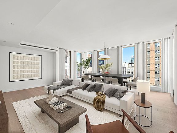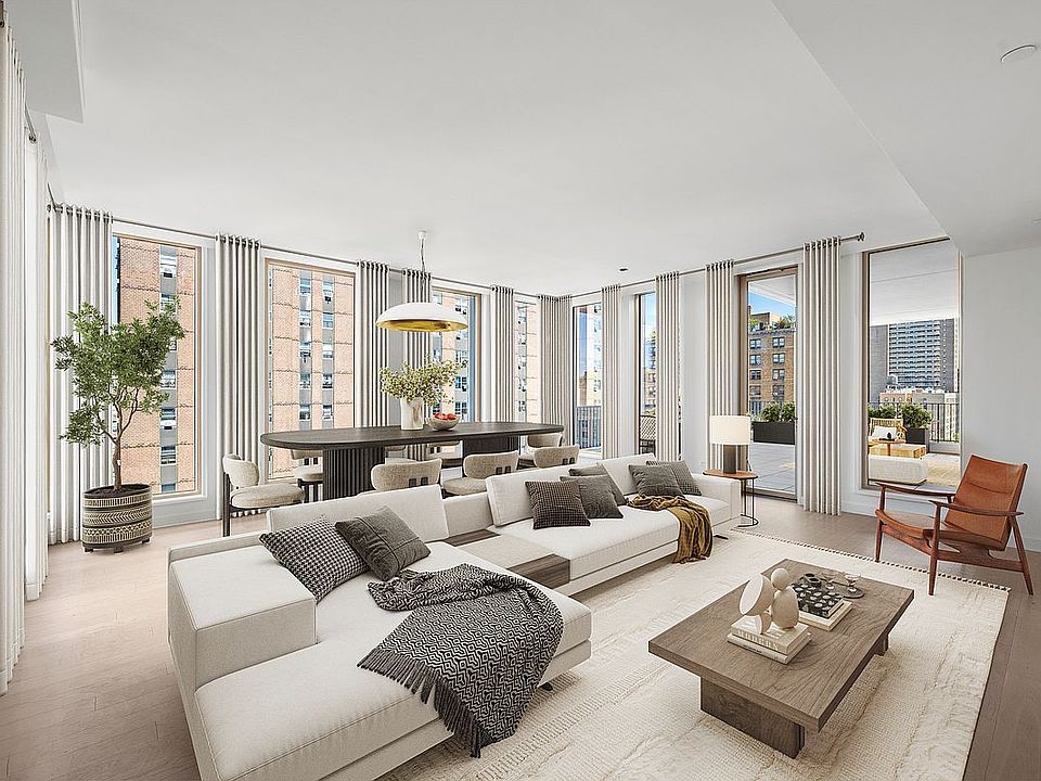 An intimate full-floor home, Residence 11 includes all the features of a luxurious, discrete townhouse; a private entrance, abundant outdoor garden/terrace space and complete separation of the sleeping quarters. The living dining room is a striking 22'5" by almost 21' room with three exposures: west, north and east. A true luxury, the 489sf terrace essentially doubles your living area and is accessed from both the living room and kitchen. The south-facing sleeping quarters can be entered from two separate hallways through pocket doors. One secondary bedroom includes an en suite bath, while the two others share a large adjacent bath with double vanities. The bright and sunny primary suite includes a gracious walk-in closet and en suite bath with separate tub and shower.