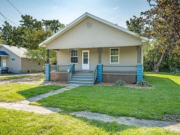 Adorable 2 bedroom house with an open floor plan. From the welcoming porch you step into the light filled living room with newer floors and stylish gray paint. The living room flows into the dining room then into the kitchen. There are 2 good sized bedrooms on the main floor. One has the original hardwood floors. The kitchen is functional and includes the stove and refrigerator. The basement is partially finished with space that could be turned into a 3rd bedroom, craft room or office. Outside there is concrete pad perfect for a garage and nice level lot. Move right in and make it your home.