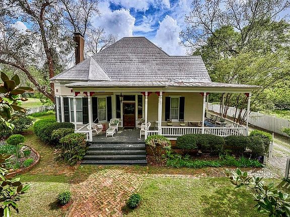 Find your small-town bliss in this enchanting c.1873 New South Folk Victorian cottage! Shielded from the street by towering magnolias, this 2 bedroom/2 bath cottage is within walking distance of Historic Washington’s Town Square and ideal for in-town luxury living. Step inside to find history perfectly preserved and celebrated with soaring 14 ft ceilings, all-natural wood wainscotting and details, Charleston etched glass fixtures, pocket doors, original mantels and fireplaces, and glistening Heart of Pine floors within the parlor, formal dining room, bedrooms, and hallway. The eat-in kitchen and spacious primary bedroom ensuite bathroom add a dash of modern luxury with high-end appliances and amenities. Perfect for entertaining, the grounds include a saltwater swimming pool, wide inviting porches, and multiple alcoves for outdoor living within the heritage gardens. Escape the hustle and bustle to make this your home sweet (historic) home!