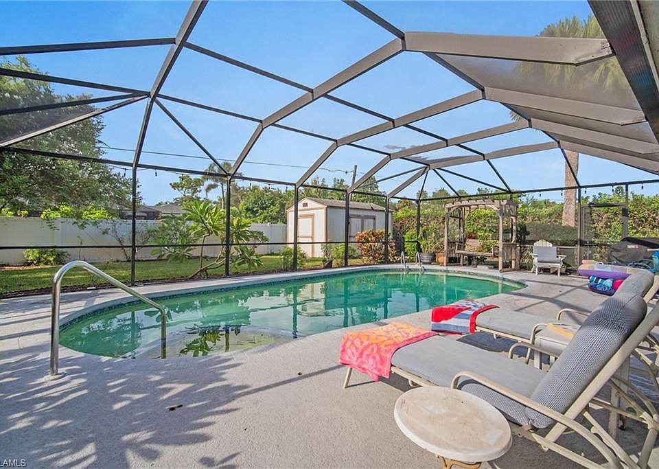 In sought-after Willoughby Acres, discover a gardener’s paradise with a private pool and a host of impressive updates—all ideally located west of I-75 and just minutes from pristine Gulf beaches, dining, and shopping. This light-filled 3-bed, 2-bath residence pairs everyday comfort with thoughtful improvements, including a new roof and gutters (2023), impact windows (2020), new AC, pocket sliders, and a generator hook-up for peace of mind. Inside, generous-sized rooms offer comfort and flexibility, with an open flow that makes everyday living effortless. The spacious screened lanai invites year-round enjoyment with both shaded retreats and sunlit lounging areas, perfect for relaxing, entertaining, or dining under the stars. Beyond the lanai lies a true gardener’s dream, where roses, plumeria, and orchids bloom in abundance, transforming the grounds into a vibrant, fragrant oasis. Whether you’re a seasoned green thumb or just beginning to cultivate your passion, this fenced property provides privacy and ample space to expand your vision. Here, the tranquility of a private oasis meets the convenience of North Naples living—truly the best of both worlds.