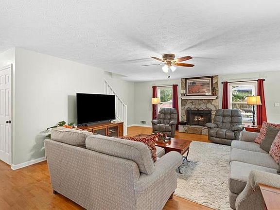Nestled in a peaceful cul-de-sac, this meticulously maintained 4-bedroom, 3-bathroom home with the primary suite on the main floor and split bedroom plan. The family room is cozy with the fireplace and overlooks your oasis of a backyard with a saltwater in-ground swimming pool. The formal dining room is perfect to host your holiday dinners and if you have company the 4th bedroom/bonus room is perfect. It can also be used as a man cave, office, she shed or a place for the kids to hang out. If you still need room there is an unfinished basement perfect for your custom designs. Located for convenience, this lovely home provides easy access to shopping and major highways, making it perfect for anyone seeking both tranquility and accessibility. Home is meticulously maintained and have many recent improvements all siding replaced with Hardie plank, 6" gutters, all windows replaced Brand:Masters no grids, top/bottom unlock and fold inside for easy cleaning, New Sofit's, Facia, New rear deck and steps, New steps and handrail on front porch, New 30 mil pool liner, New pool light February 2025, New front fence and side 2021, Trane A/C unit has upgraded Aprilaire filter system.