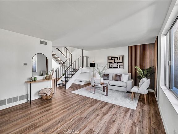 This beautifully updated 3-bedroom, 1.5-bathroom gem is located in a gated community in Palm Springs, offering 1,344 sq ft of sleek, modern living with recessed lighting, air conditioning, and a scenic backdrop of the Palm Springs hills. The open-concept main level includes a spacious living and dining area, a stylish kitchen with quartz countertops, stainless steel appliances, ample storage, and a convenient powder room. Upstairs, the primary suite features an en-suite bath, alongside two additional bedrooms and a full bathroom. Enjoy the ease of an in-unit washer and dryer, a private garden patio ideal for outdoor dining or relaxation, and direct access to two covered parking spaces with additional storage. The community offers two sparkling pools, relaxing spas, beautifully landscaped grounds, and low HOA fees—all just minutes from downtown. This move-in ready home is the perfect Palm Springs retreat!