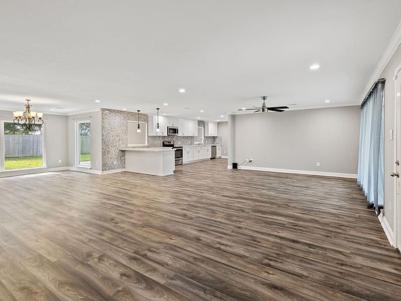 Beautifully Remodeled Home on an Oak Tree–Lined Street Step inside this stunning 3 bedroom, 2 bath home in the heart of Lake Charles, where modern design meets timeless comfort. Fully remodeled from top to bottom, this home offers an open concept layout bathed in natural light from the expansive front windows, creating an inviting and spacious feel the moment you walk in. The kitchen steals the show with its elegant herringbone backsplash, white cabinetry, quartz countertops, and stainless-steel appliances; all perfectly designed for cooking, entertaining, or simply enjoying your morning coffee. Sophisticated touches continue throughout with a calm, neutral color palette, crown molding, recessed lighting, and durable vinyl plank flooring that flows seamlessly from room to room. The primary suite features a large walk-in shower with custom tilework and a modern glass enclosure. Enjoy the outdoors in your private, partially fenced backyard shaded by mature oaks perfect for gatherings, playtime, or peaceful evenings at home. The two-car garage provides convenience and extra storage, while the home’s location on a picturesque oak-lined street offers a true sense of charm and serenity.