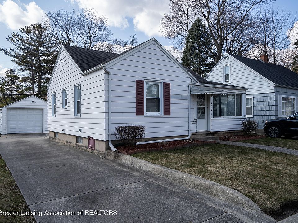 Welcome to 2120 Alpha Street Located in South Lansing. This beautifully maintained 2 bedroom, 1 bathroom home offers a large concrete driveway that wraps around the home to the back porch, where you will find a large detached 1 car garage and storage shed. This home offers a large backyard partially fenced for added privacy. Enjoy living within walking distance of Hawk Island Park, and 1.5 miles from Potter Park Zoo! This home features a bright and vibrant kitchen and living area with glowing hardwood floors. Enjoying sitting in your enclosed front porch sunroom year round with large windows for a beautiful midwest neighborhood view. Located in this large, open, titled floor basement is the washer/dryer. This basement offers tons of room for storage, or game/playroom for the family!
