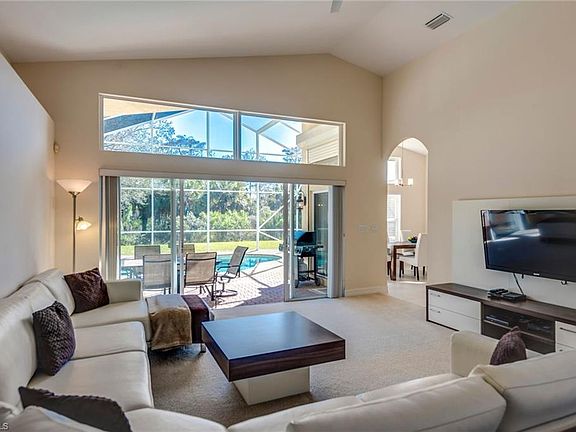 Light and bright Ruby floor plan single family home with pool on a private corner lot in the popular community of Saturnia Lakes. Home features vaulted ceilings throughout. Featuring a split floor plan with master suite offers 2 large walk-in closets, master bath has both the soaking tub and shower as well as dual sinks and vanity. The oversize lanai with private pool overlooks the preserved behind the property. The home is offered furnished with custom European so you can start enjoying your Florida lifestyle immediately. The HOA community fees include 24 hour staffed gate house, lawn maintenance, irrigation, full time on site social director and the all the amazing amenities. 12,000 square feet clubhouse with a grand ballroom, sports and billiards room, card room, dance studio, fitness center, arts and crafts center an Internet Cafe. For pool Saturnia Lakes has heated resort style pool, lap pool, spa as well as toddler area. For the outdoors sport activities 4 Har-Tru tennis cours, basketball court, walking/jogging paths throughout and children's playground.
