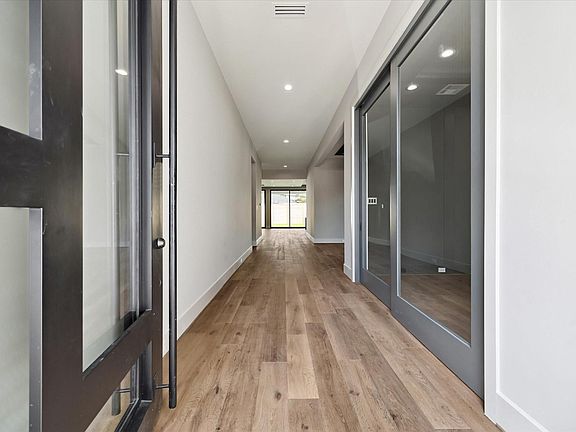 Exquisitely crafted, this 2025 modern masterpiece combines superior construction w/ refined luxury design. Built with 2x6 exterior walls, tankless water heaters, PEX water lines, & a radiant barrier roof, it delivers efficiency, strength, & long-term value. Every detail reflects quality, from site-built cabinetry to the striking custom metal front door & stair railing. Prewired for Wi-Fi, cameras, & alarm, the home blends modern convenience w/ timeless craftsmanship. Striking lighted architectural features set the tone for sophisticated living, w/ a private study, expansive living area w/ lighted glass shelving, & a dramatic fireplace centerpiece. The chef’s kitchen boasts a professional Thermador range, sleek quartz countertops, & an impressive island. Upstairs, the luxurious primary retreat offers dual water closets, vanities, soaking tub, & glass shower, while three additional en-suite bedrooms provide comfort for family & guests. EV-ready garage completes this extraordinary home.