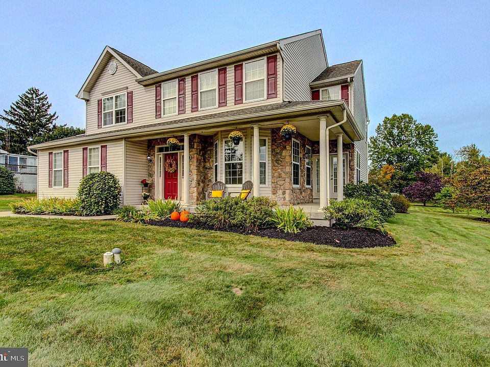 Step into timeless charm and modern comfort in this stately home enhanced by a spectacular in-ground pool, surrounded by lush mature landscaping and perfectly situated on a picturesque sprawling lot along a quiet road in Quakertown SD. From the moment you arrive, the inviting wraparound front porch and extended driveway set the stage for the elegance and practicality this property has to offer. Inside, you’re greeted by soaring ceilings in the sunlit foyer, where classic hardwood flooring flows gracefully throughout the main level. The thoughtful floor plan strikes the perfect balance between open-concept living and intimate, defined spaces. The elegant sitting room opens to a formal dining room with porch access—ideal for hosting gatherings. Oversized windows invite natural light to pour in, creating an airy, welcoming ambiance. A freshly painted powder room on the first floor adds both charm and convenience for guests. For those working from home, the first-floor office is a standout feature. Gleaming hardwoods, abundant natural light, and a picturesque view of the backyard make it as inspiring as it is functional—you may find yourself tempted outdoors instead of behind the desk. At the heart of the home is a bright, freshly painted kitchen designed for both form and function. With plentiful counter space, a large center island, generous storage, and an open breakfast nook, it’s a space where daily life naturally comes together. Seamlessly connected is the family room, anchored by a cozy gas fireplace—perfect for gatherings and memory-making. Upstairs, you’ll find four spacious bedrooms, each offering comfort and flexibility whether used as bedrooms, creative spaces, or home offices. The conveniently located laundry room, complete with a utility sink and shelving, adds efficiency to everyday living. The luxurious primary suite feels like a private retreat with its vaulted ceiling, spa-like ensuite, dual vanities, and a designer-inspired tiled shower. The lower level features an expansive full basement, ready to accommodate endless storage or to be transformed into a recreation room, gym, or workshop. An attached 2-car garage, paired with the extended driveway, ensures ample parking and convenience. Step outside to discover an outdoor sanctuary. A spacious rear deck and additional patio seating area overlook the crown jewel of this property: a stunning, gated in-ground pool that has been recently resurfaced for peace of mind. This resort-style oasis is the ultimate setting for summer entertaining or quiet relaxation. Beyond the pool lies a flourishing vegetable garden and an expansive yard—beautifully maintained and offering both privacy and space for play, gatherings, or simply enjoying the fresh air. Don’t miss the chance to make this move-in-ready home your own. It’s a rare blend of classic elegance, everyday comfort, and a simple country lifestyle—all just minutes from the Route 309 corridor, where shopping, dining, entertainment, and convenient access to the Lehigh Valley and Philadelphia await.