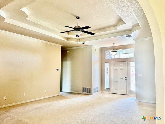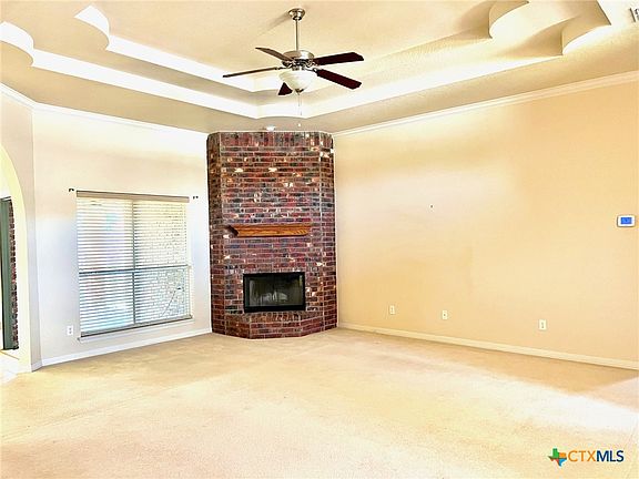 Move-in ready! New roof! Price reduced! Two-owner Carothers Diamond Series home-excellent condition in a highly sought-after residential neighborhood in Belton ISD. Just 2 blocks from Charter Oak Elementary and the HOA swimming pool and park area. On a corner lot, it features a well-landscaped fenced yard with mature trees and a huge covered patio. The interior is light, airy and open with soaring decorator ceilings. All rooms are spacious. Island dream kitchen is the one you have been looking for with new granite counter-tops, under counter lighting, and lots of storage including glass-front display cabinets. The primary bedroom suite is king-size with a luxurious en suite bath and huge walk-in closet. The refrigerator, washer and dryer can convey. Hurry!