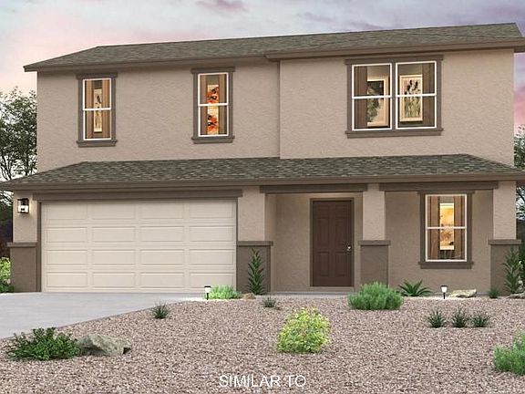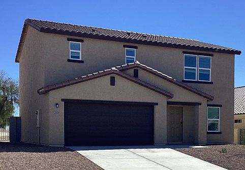 Discover unparalleled comfort in this exquisite home situated in the serene Desert Lakes Community! Introducing the Aguila Floor Plan! This thoughtfully designed two-story home offers both functionality and style. The main level features an open concept layout, seamlessly connecting the great room, dining room, and kitchen. The kitchen is equipped with granite counters, stainless steel appliances, and an island, making it a perfect space for culinary enthusiasts. Adjacent to the kitchen is a convenient dining area that opens up to a patio, ideal for indoor-outdoor living. The main level also includes a versatile bedroom and a full bath, providing flexibility for guests or additional living space. A 2-bay garage offers ample storage and parking. On the upper level, the owner's suite provides a serene retreat with a walk-in closet and an en-suite bathroom featuring a double vanity. This floor also includes two additional bedrooms, another full bath, and a versatile game room that can be adapted to suit your needs. With its well-planned layout and modern features, the Aguila Floor Plan is designed to accommodate various lifestyles while providing comfort and elegance throughout.