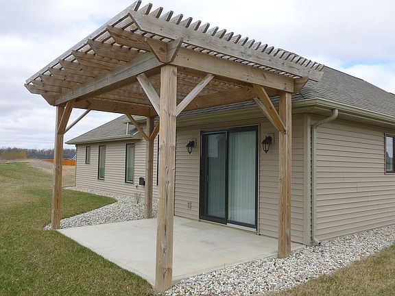 Custom built home by local builders Efficient home features 2x6 construction walls, Anderson windows, 200amp electrical, custom kitchen with quartz island and countertops, stainless steel appliances, master bedroom includes trey ceiling and walk-in closet, custom cabinets and mirrors in master and guest bathrooms, laundry room includes above cabinet, attic storage, custom window treatments throughout home, patio with pergola and outdoor landscaping.
