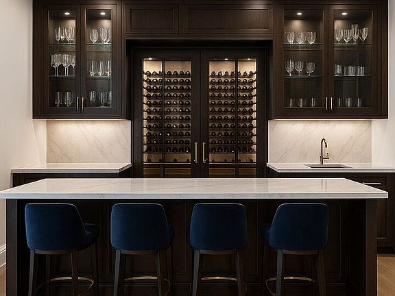 Wine cellarSpa-like en-suite bathroomDeluxe primary suiteInfinity-edge poolDual walk-in closetsModern sophisticationStunning bar