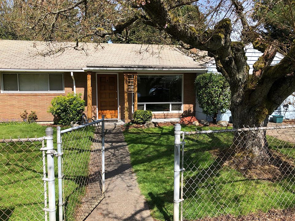 Older traditional rambler. Heat and AC provided by newer electric ductless mini-splits. Pretty remodeled kitchen with two egresses, cherry wood cabinets, quartz counter tops and porcelain floor. Separate laundry room with cherry wood cabinets. Large, fully fenced back yard with deck, large unheated storage shed and small raised garden plot. Loft for storage, reached by a ladder that pulls down. Three bedrooms. The largest one is a remodeled garage and has a skylight. All have closets. Shoreline South train station is one mile away. There is parking for one car inside the fence, and off-street parking for three other cars.