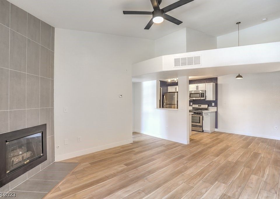 Beautifully remodeled, 2-bedroom, 2-bathroom, 2nd floor condo, located in the gated community of Solevita Condominiums. Community amenities include, pool, spa, fitness center, guest parking and parks! Located minutes from Harry Reid International Airport and the entertainment, casinos, and shopping of the District at Green Valley Ranch! Home has gorgeous interior finishes, custom floor to ceiling tiled fireplace, ceiling fans, painted accent walls, modern light fixtures, balcony, laminate wood flooring and plush carpet throughout. Custom kitchen with new counter tops and white shaker cabinets, and stainless-steel appliances. Bathrooms have been fully upgraded with tiled shower, new vanities with framed mirrors, lighting.