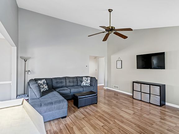Meticulously maintained 4 bedroom ranch in Valley Creek of Elgin! Wood laminate flooring throughout. Open-concept living room and kitchen for ease of entertainment. The vaulted living room boasts a floor-to-ceiling wood-burning fireplace flanked by two large windows for natural light. The eat in kitchen has been revitalized with newer stainless steel appliances and refreshed cabinets, breakfast bar, pantry, and table space that opens to the deck. Separate formal dining room just off of the kitchen. 3 Generous sized bedrooms on the main level to include a master suite with a private bath and walk-in closet, Full hall bath (new paint, sink, and toilet) with additional access to the second bedroom (also would make a great in-law suite). Completing the main level is a mudroom off the kitchen to the garage that still has laundry hookups for a main level laundry. The finished lower level is great for additional entertaining space with a rec room, space for an at-home office, new laundry room, and 4th bedroom with a new full bath that would be great as an in-law arrangement or guests. Solar panels installed that on average accounts for at least 50% of the electric bill, more in the summer. In the warmer months enjoy your time on the deck overlooking the partially fenced yard. Fantastic location with access to shopping/dining, parks, and easy access to the interstate. Don't wait to schedule your tour, it will not last long!