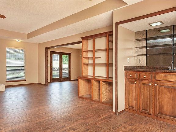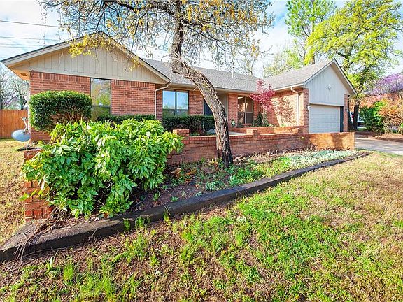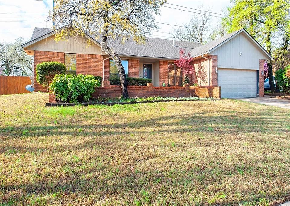 Great home with lots of potential to make it your own. Split floor plan. Spacious kitchen with separate dining room area and so much storage and counter space. It's a perfect entertaining area. Living area is HUGE with a bi-level accented ceiling, brick floor to ceiling fireplace surround, wood floors, ceiling fan, wet bar, built in shelving and exterior patio access. Secondary bedrooms are very spacious and separate from the master bedroom. One bedroom has a great builtin in desk. All bedrooms have ceiling fans and spacious closet space. Such a great layout! Secondary bath is located in the hall with easy access from all bedrooms. Master bedroom is spacious with ceiling fan, walk in closet, double vanities and tub/shower combo. The backyard has so much potential with all of the space and full privacy fencing. Located right in the heart of Edmond close to shopping, restaurants, UCO, Oklahoma Christian University, I-35 and the Kilpatrick Turnpike.