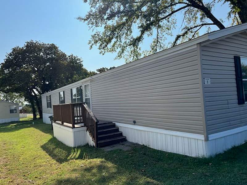 This 1216 square foot manufactured home in Buffalo Ridge, built in 2013 by Fleetwood, features 3 bedrooms and 2 bathrooms. As you step inside, you are greeted by a spacious living room that opens up into a modern kitchen equipped with all appliances including an oven, fridge, and dishwasher. The home also boasts a convenient laundry room and central A/C to keep you comfortable year-round. Step outside onto the deck and enjoy the peaceful surroundings of the community.Buffalo Ridge in Burleson, TX is a charming community with a welcoming atmosphere. Residents of Buffalo Ridge enjoy amenities such as a community pool, playground, and walking trails. The location is ideal, with easy access to nearby shopping, dining, and entertainment options. This community is perfect for those looking for a quiet and family-friendly neighborhood to call home.