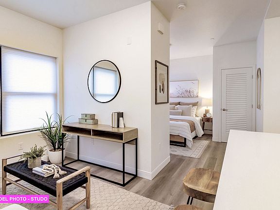 This studio apartment includes a full bath, electric stove/range, dishwasher, refrigerator and in unit washer/dryer (Additional Fee)