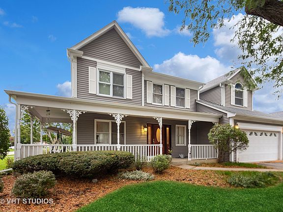 New Year New Home right here in Valley Creek! This is a MUST SEE! Located on a corner lot you'll see this beautiful wrap around porch with beautiful foliage all around! Great Open lot with a pergola deck in back. This Beautiful home consists of 4 huge Bedrooms and 2.1 Baths Plus a Finished Basement and Fireplace. Pride of Ownership shows throughout this home. With Hardwood floors as you enter and through the Kitchen and Family Room. Separate Dining room for family gatherings and plenty of windows for natural lighting. Beautiful Kitchen with Breakfast eating area and access to backyard. Recent updates include New Roof 2023,Heating and A/C and Hot Water tank within the last 5 years Plus New Garage Door Opener. Tons of storage throughout this home also features a Huge master bedroom with multiple closets along with a walk in closet and sitting area. The finished basement/rec room has plenty of room for entertaining and tons of storage . Including a 2.1 attached garage and side drive. Just minutes away from shopping, the expressway, parks and Schools and only 35 minutes to O'hare airport. Don't Delay this one will go quick...For your Private showing give us a call today!!