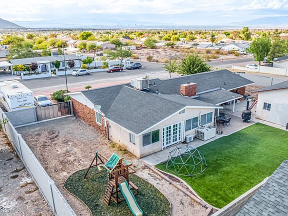 PRICED TO SELL!! Welcome to this rare 15,682 ft corner lot with RV gate no HOA in the highly sought-after neighborhood in Henderson! Fall in love with the perfect blend of comfort, functionality, and location this single-story home offers. Step inside to an open floor plan featuring 3 bedrooms and 2 bathrooms, neutral paint throughout, a bright and spacious living area, w fireplace insert that efficiently heats the entire home during the winter months. The kitchen is well-equipped with double ovens and plenty of counter space for your culinary adventures. Outdoors, enjoy a covered patio, RV parking, and plenty of room to store your outdoor toys. The property includes a 2-car attached garage + massive detached shop garage (over 1,300ft.) with office with ac/heat , ideal for car enthusiasts, hobbies, or running a home-based business. easy freeway access and minutes from Lake Mead, local parks, schools, and the famous 35-mile River Mountains Loop Trail.