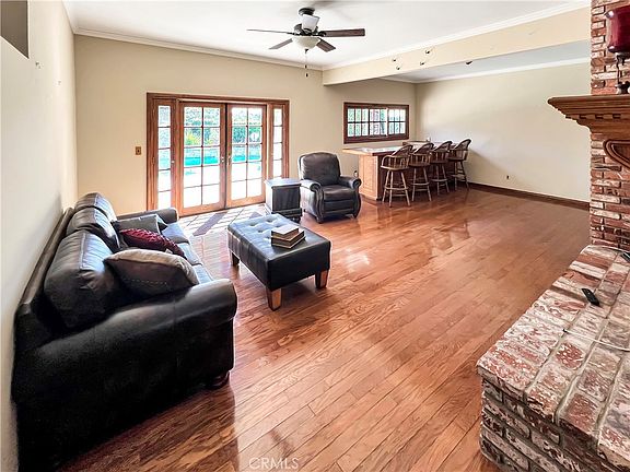 The large living room with a cozy fireplace flows seamlessly into a huge family room with vaulted ceilings, fireplace, wet bar, and easy access to the yard a true entertainer's dream. A chef's kitchen with double ovens, gas cooktop, and ample counter space overlooks the dining area and family room, making gatherings effortless. A formal dining room adds elegance for special occasions.The primary suite provides a private retreat, complete with a walk-in closet and updated finishes.