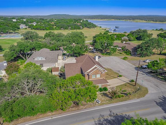 This 4-bedroom, 2.5-bath, 2,293 sq. ft. home sits on a spacious 0.34-acre corner lot and offers beautiful views of Lake Travis from the deck and the primary bedroom balcony. A guest bedroom is conveniently located on the main level, along with tile and hardwood flooring throughout the living areas. The formal dining room, breakfast area, and family room with a cozy fireplace create inviting spaces for gatherings. The island kitchen features granite counters, a breakfast bar, electric cooktop, built-in oven, and stainless steel appliances. Upstairs, a curved stairlift chair offers easy access to the upper level, where you’ll find a spacious primary retreat with French doors opening to a private balcony. The ensuite bath boasts dual vanities, a separate shower, and a walk-in soaking bathtub. Two secondary bedrooms share a full bath. Enjoy Lake Travis amenities, including parks, water access, and recreational opportunities, all while living in a prime corner-lot location.