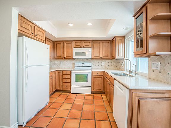 Stylish plantation shuttersNew carpetStone backsplashSaltillo tile floorsCeiling fanBuilt-in appliancesQuartz-topped counters