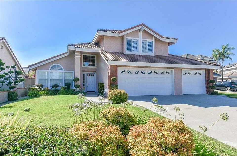 Walnut School District! This single family 2 story property located at Walnut Ridge Community has excellent open floorplan with high ceiling in a quite cudasac neighborhood. Downstairs is a large living room, dining area, kitchen, family room with fire place, guest half bath, a master bedroom with retreat and fireplace with jacuzzi tub and separate shower and walkin closet. 3 car remote garage and laundry room. Upstairs is a built in entertainment den with library and a built in full size bed that can be folded in and easily pulled out for guest stayover. Also upstairs is 2 bedrooms with walk in closet and a full bathroom. Both upstairs and downstairs have plantation window shutters. Have 2 sky light and lots of window for natural sunlight. Backyard has a patio with outside kitchen for family food gathering. Nice and peaceful and spacious backyard and sideyard with mature fruit trees like peach, oranges, persimmons. Backyard is a view of community park. Close distance to Mt Sac College and Cal Poly University. Overall condition need cosmetic repair like replacing carpet, paint, roof leaks, patch up ceiling, wood damage on patio, and central A/C need repair. Please note property close proximity to railroad.