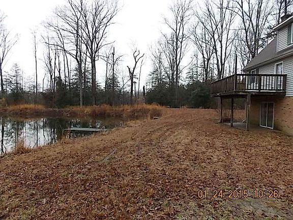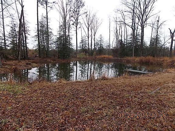 Spacious 1.5 story home on 3 acres offers loads of privacy and potential at a GREAT price! 3 bed, 2 bath home has a covered front porch that wraps around to a side deck. The large (20x27) family room has built-ins, a fireplace w/gas logs and opens to a 12x18 rear deck that overlooks the small pond in the backyard. Two bedrooms and another bath upstairs. Kitchen/Dining room offers easy access to side deck, utility room, downstairs bath and family room. Kitchen also has built in desk, island, lots of cabinets and large window overlooking backyard. Wood floors in family room and kitchen. Basement has 700 sq ft garage w/ bay door and another 700 sq ft that is unfinished with patio doors opening to the backyard. Storage building and dog pen are already in place for you. Priced $72,000 BELOW tax assessment!! Bring your offers fast!
