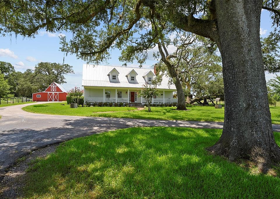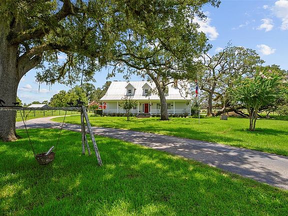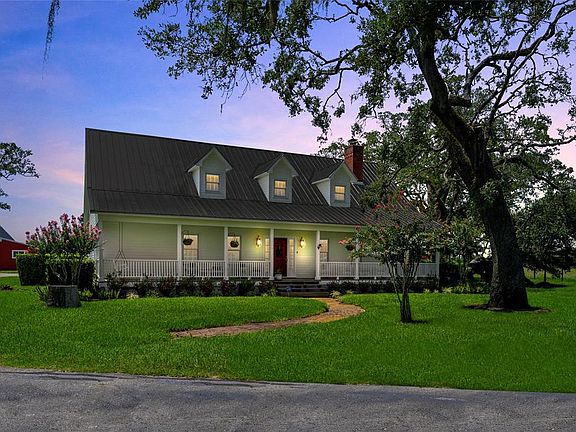 Enjoy Texas Style living in this gorgeous Needville home situated on 5+/-wooded acres. Interior boasts: crown molding, pine wood floors, travertine tile, spacious open floor plan with a unique 1,000 bottle climate controlled Wine Room complete with a silestone peninsula. The kitchen is fit for a chef w/soapstone counters, upscale appliances such as Theramador, Dacor, & Kitchenaide, ample counters/cabinets w/glass tile backsplash, under cabinet lighting, reverse osmosis, custom pull out pantry & a wall of windows offering endless views to outdoors. Primary suite has oversized bath w/soaking tub, separate walk in shower plus rain shower head & body sprays. Exterior consists of "Hill Country" inspired saltwater pool/spa with limestone waterfall & vintage windmill feature, 50x38 metal insulated shop, 38x19 pole barn w/horse stalls & chicken coop. This property combines country comfort with city conveniences near by and just minutes from major freeways like 288, FM 762, and Highway 36.
