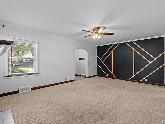 Welcome to this charming 1.5-story home full of character! Located in the Short Hills subdivision, this property features 4 bedrooms, 2.5 baths, and a detached 1-car garage. The main level includes a spacious living room with a fireplace, a bright kitchen with white cabinetry, stainless steel appliances, and ample storage, as well as two bedrooms and a full bath. Upstairs, you’ll find two additional bedrooms and a half bath, offering flexibility for family, guests, or office space. Finished basement with full bath. The home’s brick exterior adds timeless appeal, and it’s located within the United Township School District. Buyer and buyer’s agent to verify all information, including square footage, room sizes, school zones, taxes, exemptions, and zoning. Measurements are approximate.